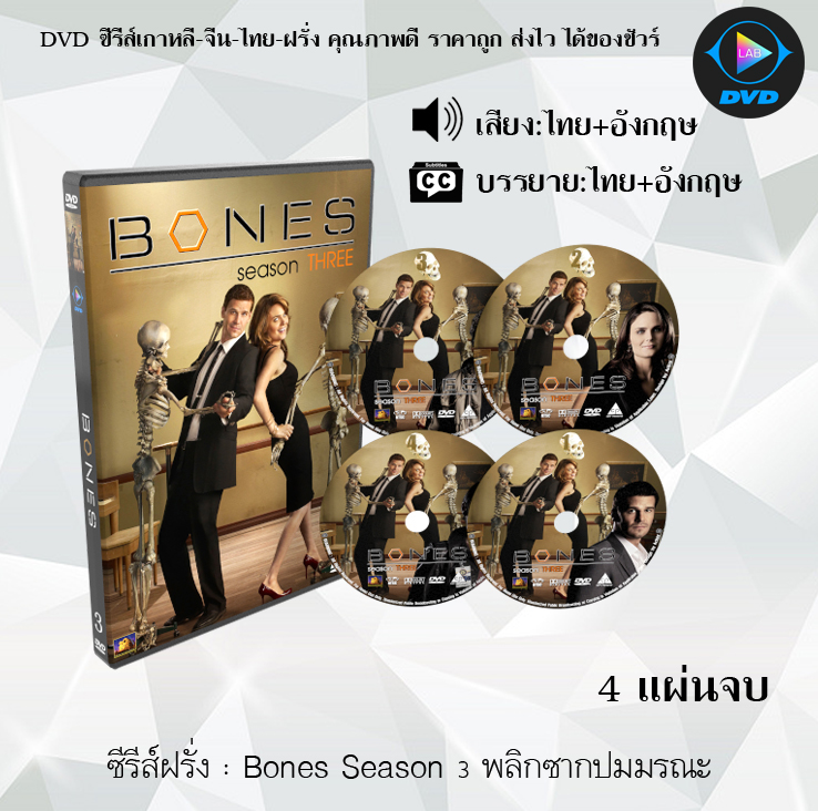 DVD ซีรีส์ฝรั่ง เรื่อง Bones Season 3 พลิกซากปมมรณะ 4 แผ่นจบเสียงไทย+อังกฤษ